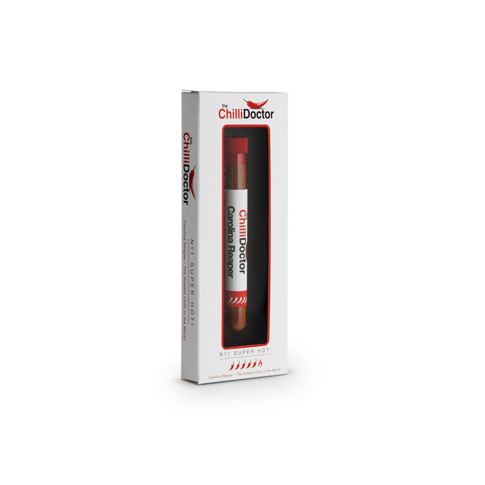 Limitovaná edice chilli Carolina Reaper. Carolina Reaper v dárkovém balení Chilli Doctor potěší všechny znalce chilli - ty, kteří chtějí zažít maximální pálivost tohoto chilli. Zkumavka obsahuje jemně mletý prášek Carolina Reaper - nejpálivější komerčně dostupnou chilli papričku na světě. Doporučujeme chilli papričku Carolina Reaper nejprve opatrně posypat a ochutnávat v malém množství. Není určeno pro začátečníky.