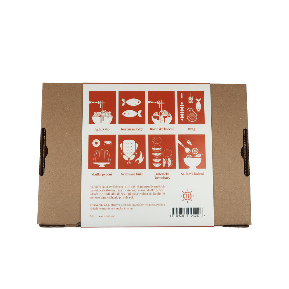 Vánoční sada je výběrem osmi našich nejprodávanějších směsí. Na těstoviny, ryby, brambory, maso i sladké pečení. Skvěle se hodí jako dárek a přinese radost do kuchyně nejen o Vánocích, ale po celý rok.
