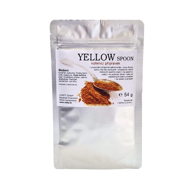 YELLOW SPOON je směs koření, kterou jsme vytvořili v roce 2009 společně s naší exotičtější směsí MAGIC SPOON. Zatímco Magic Spoon má silnější orientální charakter díky kardamomu a skořici, Yellow Spoon je chuťově bližší evropským zvyklostem, ale zachovává si indické kouzlo.